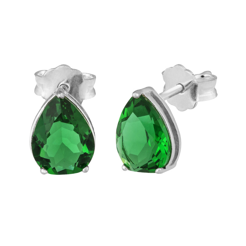 Brinco Prata Gota Zircônia Cor Esmeralda 6x8mm 00125