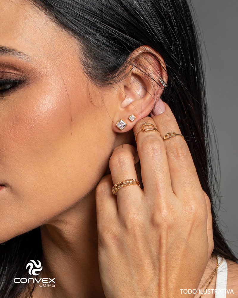 Material: Prata 925 Revestida com Ouro 18k e Zircônia branca carré