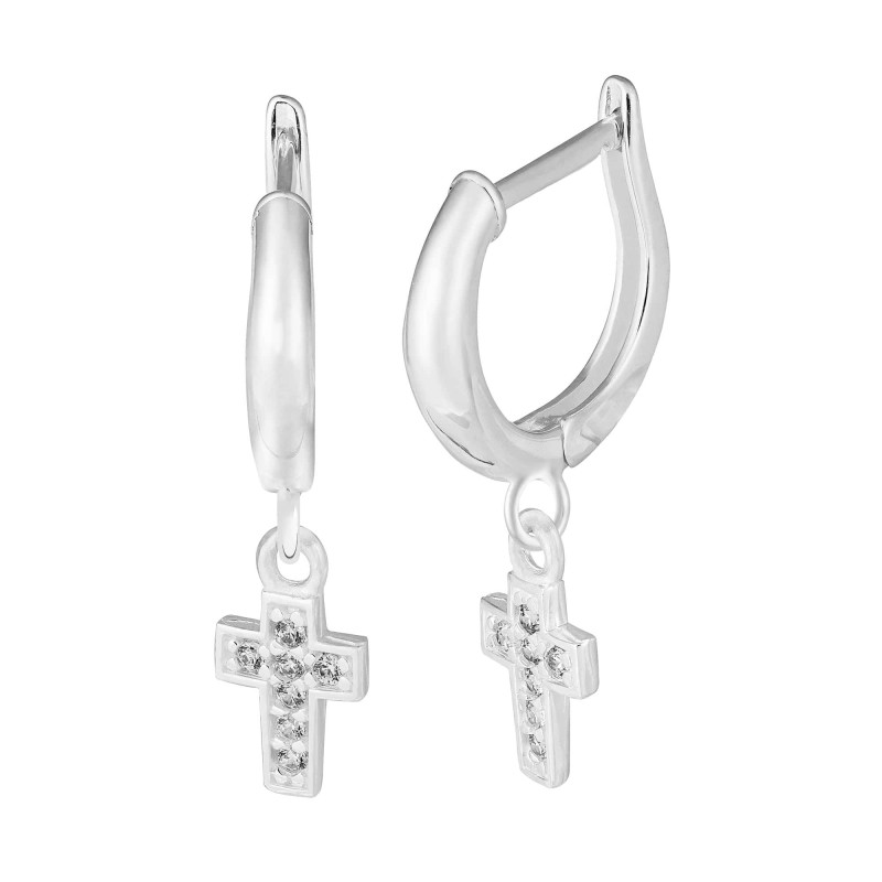 Os Brincos em Prata Argola com pendente de Cruz com Zircônias Brancas combinam com todas as religiões, são super delicados e eles podem ser utilizados no primeiro furo ou até no segundo, proporcionando vários mix de brincos para brilhar ainda mais.