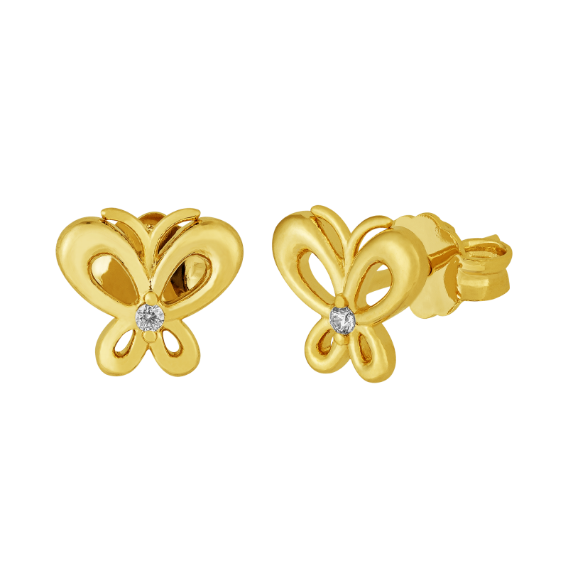 Brinco Prata Revestida de Ouro 18K Borboleta Tenn charm 00090