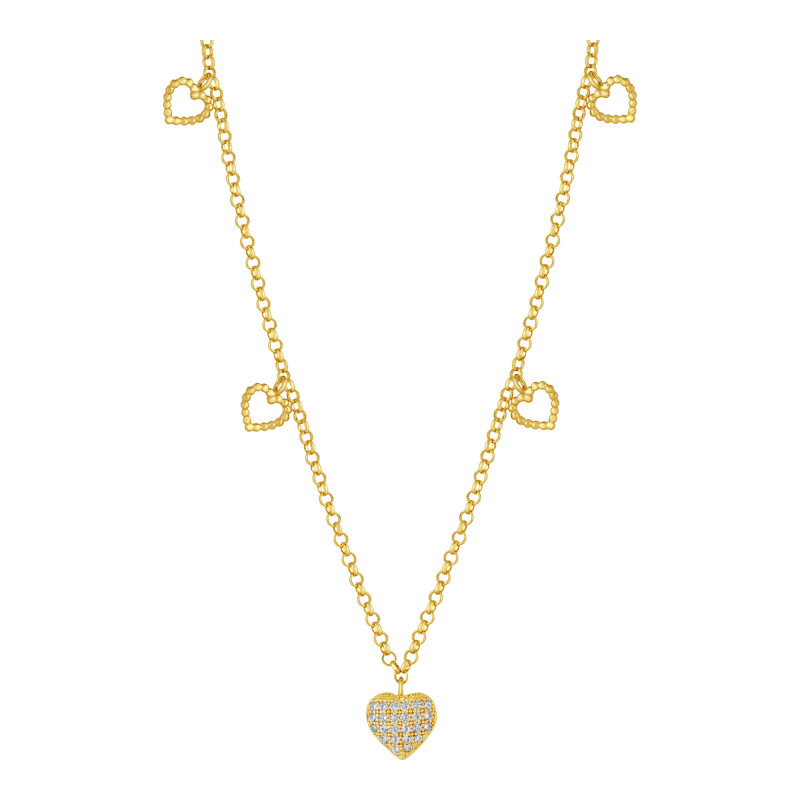 Colar Prata Revestida de Ouro 18k Portuguesa Coração com Zircônias Brancas 00290