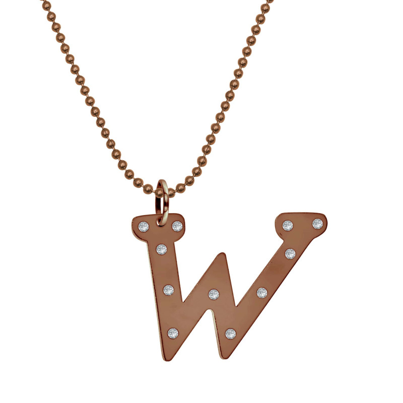 Colar de Aço Bola/Bola com Letra W com Zircônia Branca 50cm Ultra IPBR