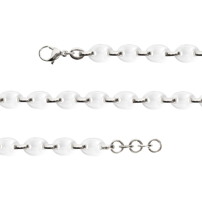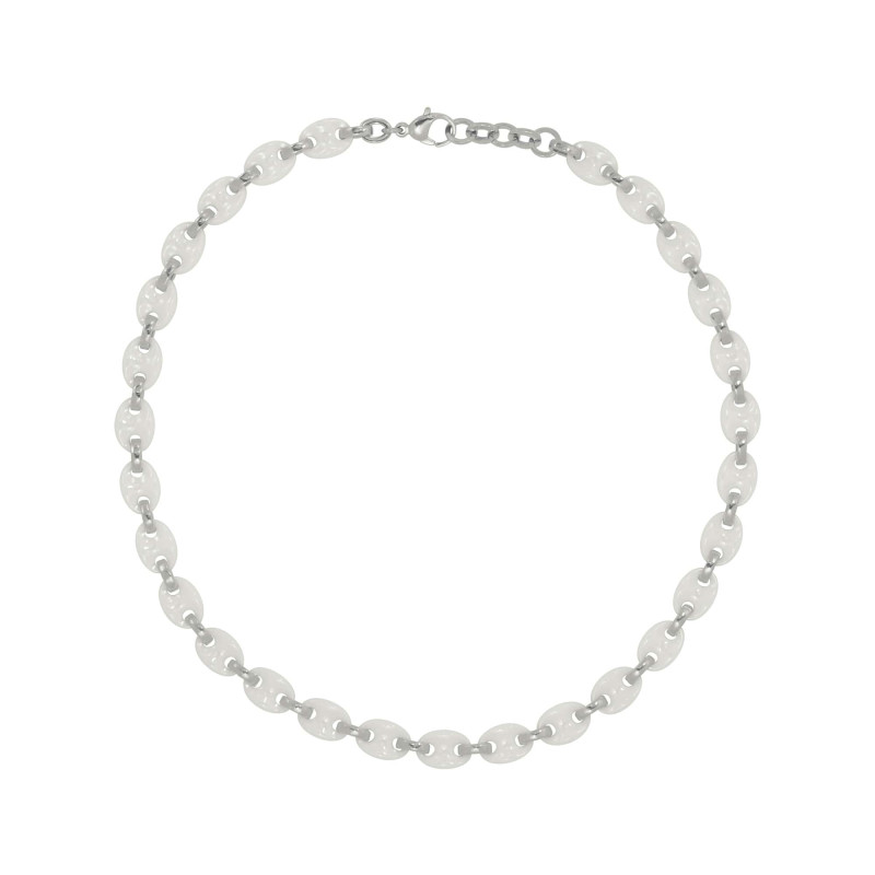 Colar em Aço Elos Ovais Aço e Cerâmica 11mm 50cm
