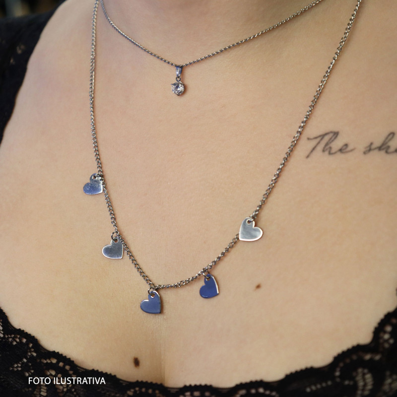 Colar em Aço GLAM Groumet com 5 Corações Lisos 0.9x0.8mm 45cm