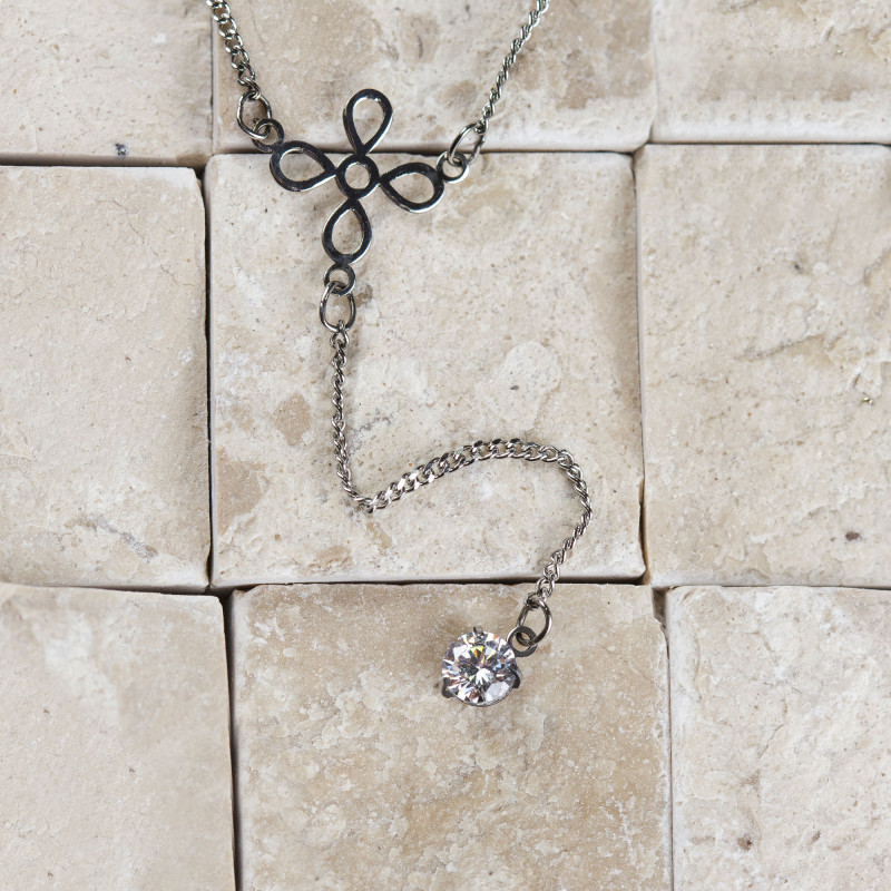 O Colar em Aço Gravata Flor é delicado, ideal para compor mix de colares em aço. Combina com todos os estilos e idades.