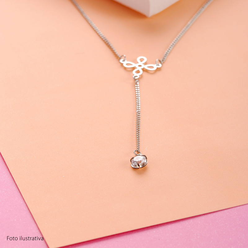 Colar em Aço Gravata Flor com Ponto de Luz 45cm