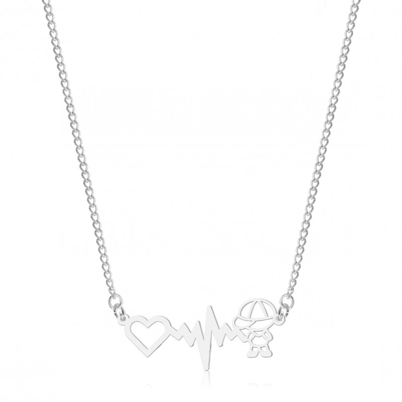 O Colar Coração com Batimento Cardíaco e Menino em malha groumet é o presente ideal para as mamães de meninos que agora joias modernas e estilosas, ele é feito em Aço 316L, garantindo durabilidade a joia e muito estilo ao look.