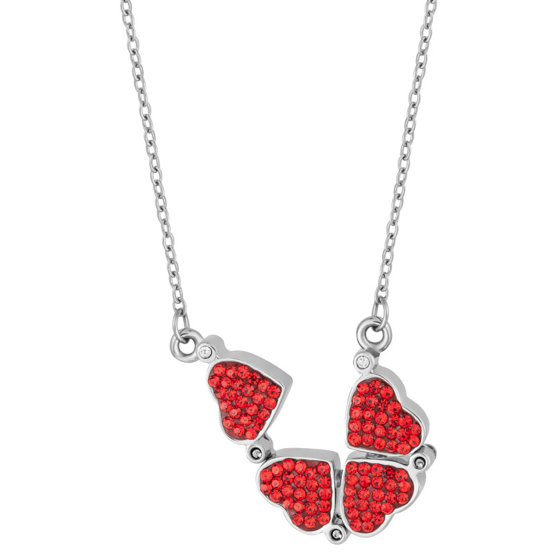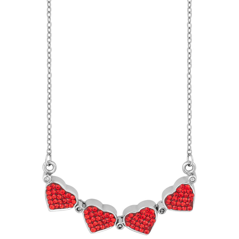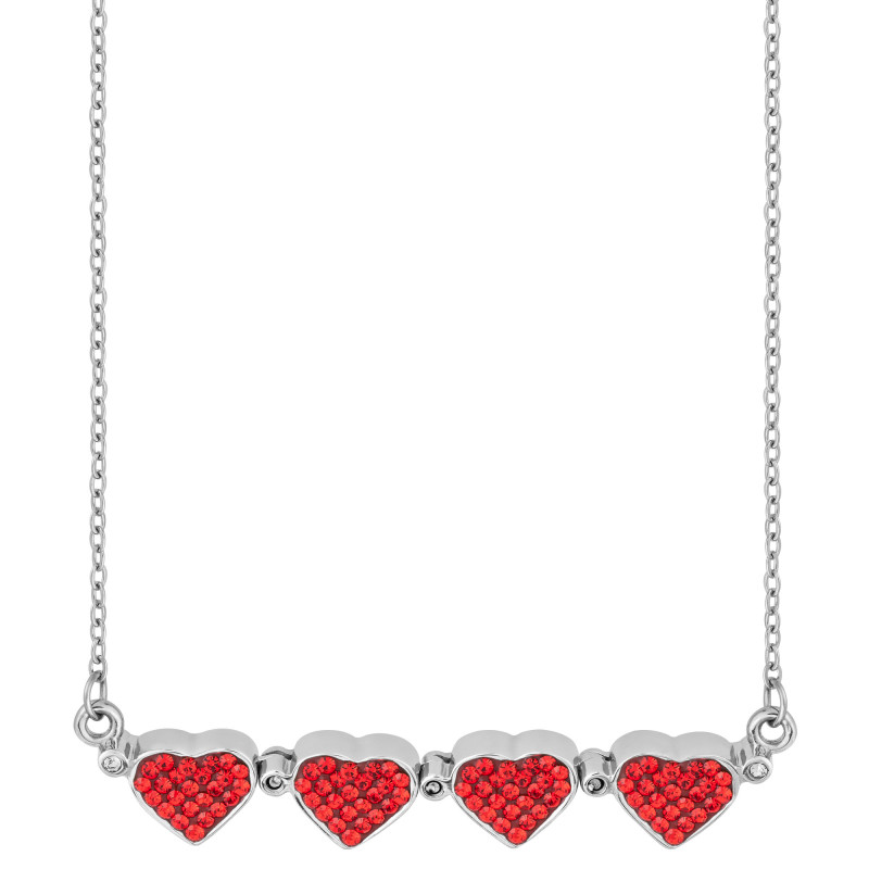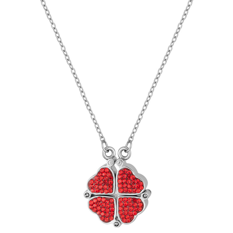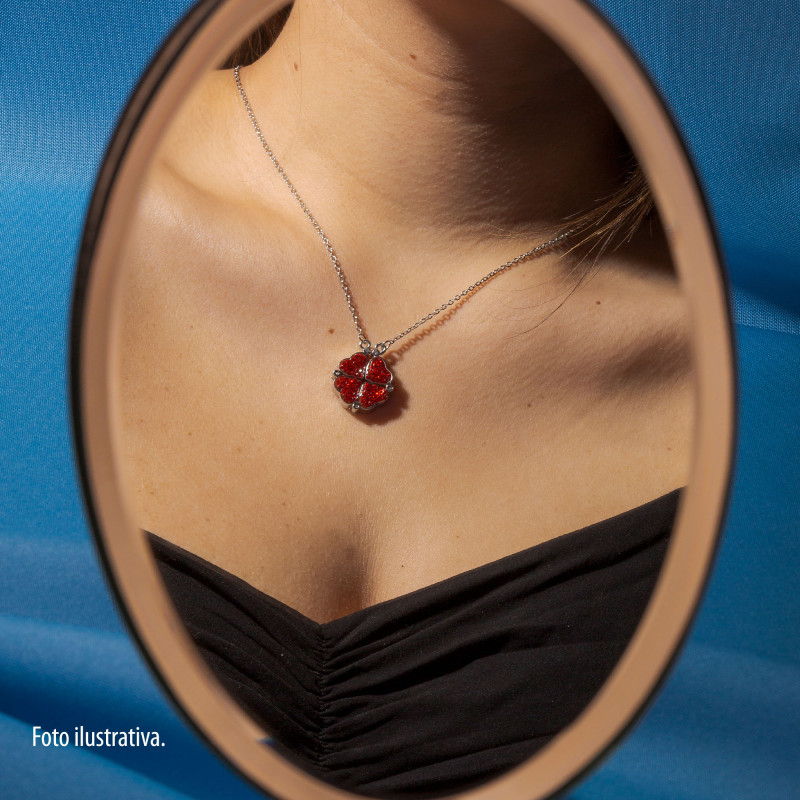 Colar Aço Trevo ou 4 Corações Zircônias Vermelhas