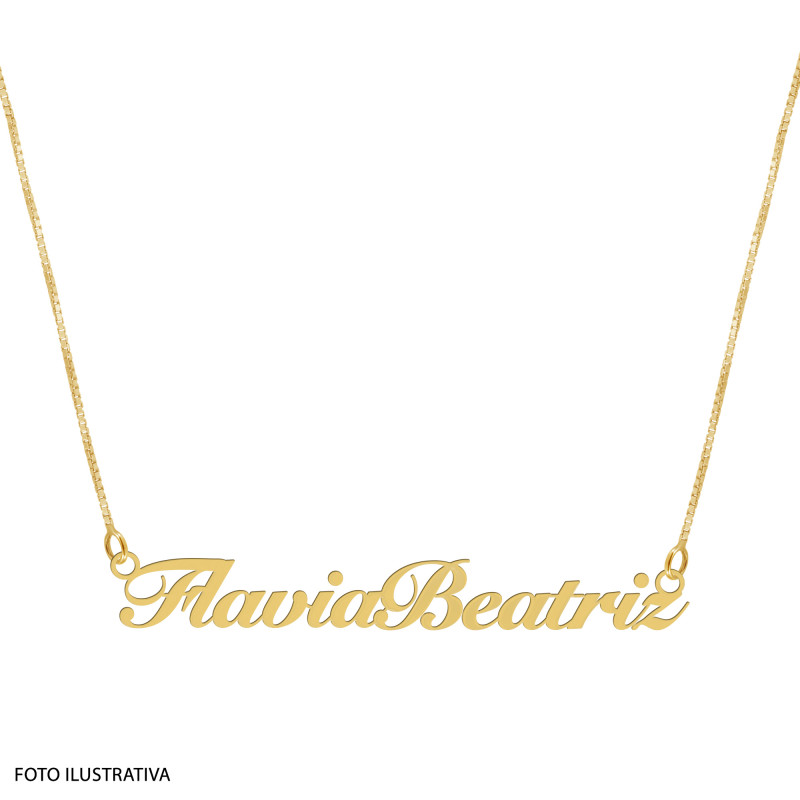 Colar em Prata Revestido com Ouro 18K Veneziana com Manuscrito Nome Composto 45cm 00100