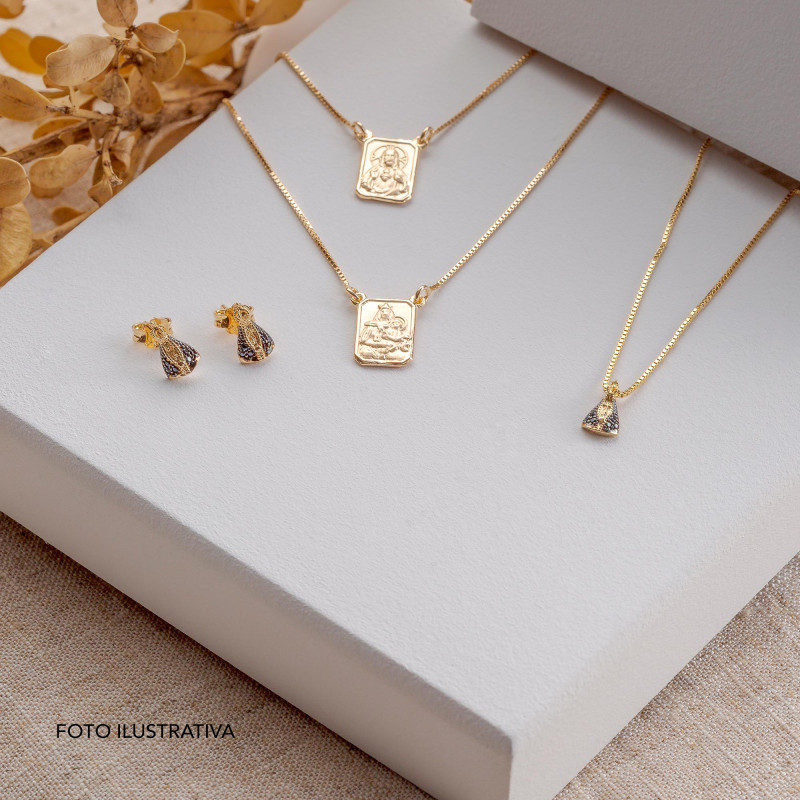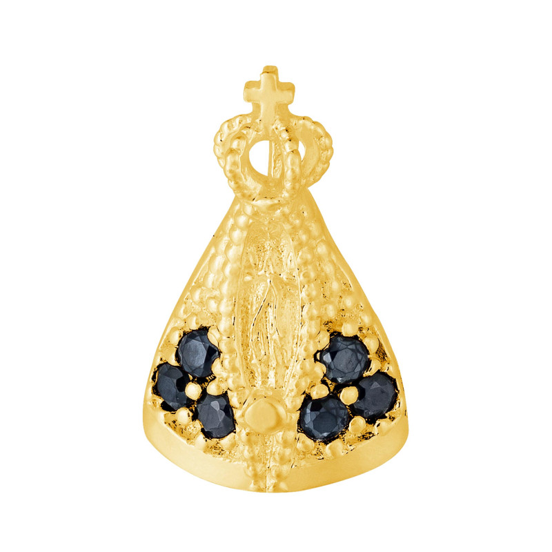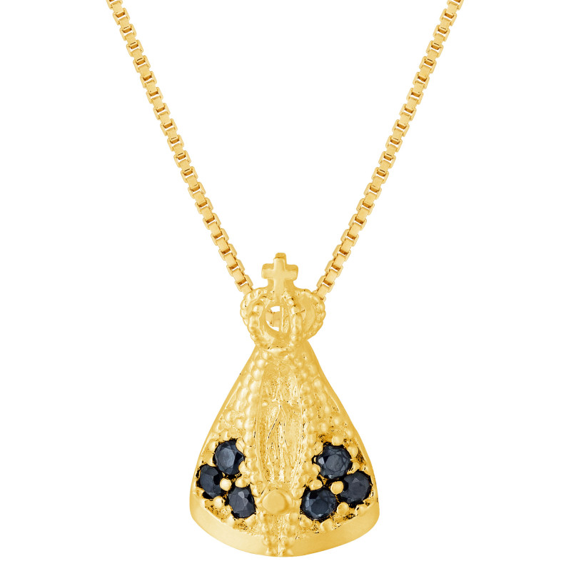 Colar de Prata N. Sra. Aparecida Revestido em Ouro 18k com Zircônias Negras