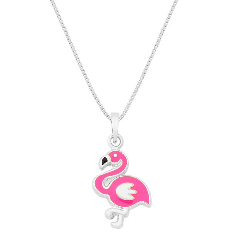 Colar em Prata Flamingo com Resina Rosa 13.50x10mm 37cm 00170