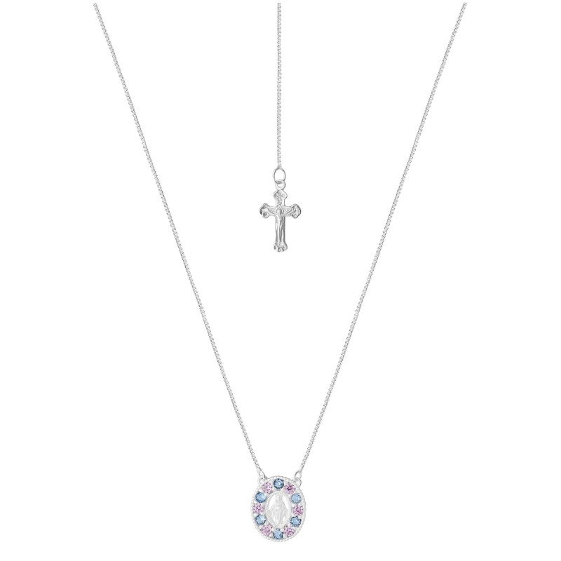 Colar Prata Veneziana N. Sra. das Graças com Zircônias Azuis e Lilás 00270