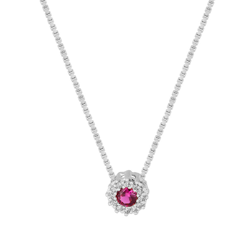Colar Prata Veneziana Ponto de Luz Pink com Zircônias Brancas 00195