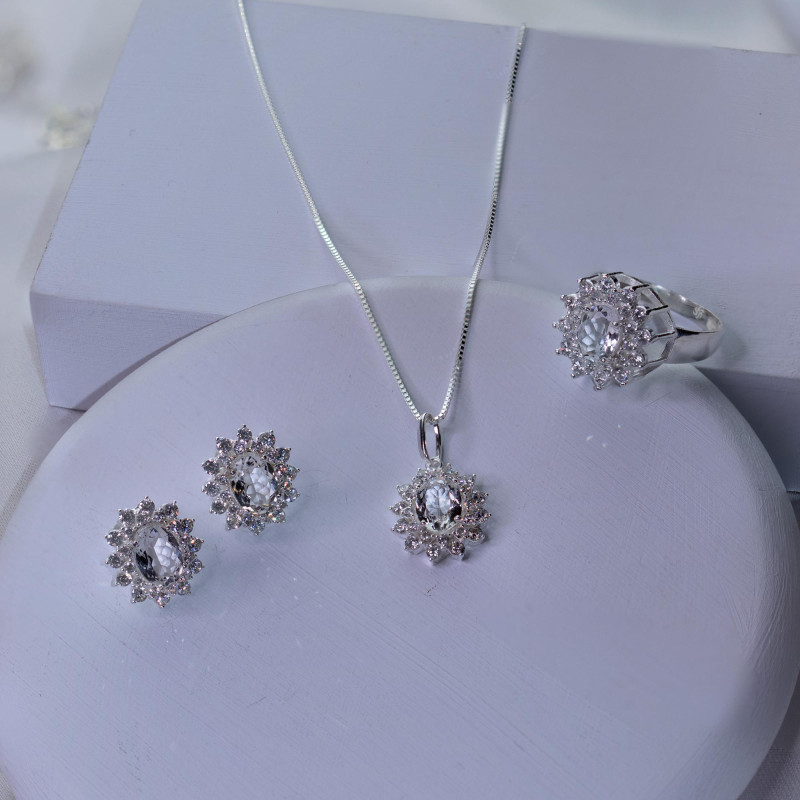 O uso da prata nas joias traz a elegância de um dos metais mais nobres, tornando cada detalhe especial, sendo um material clássico que se mantem em alta na moda e estilo.