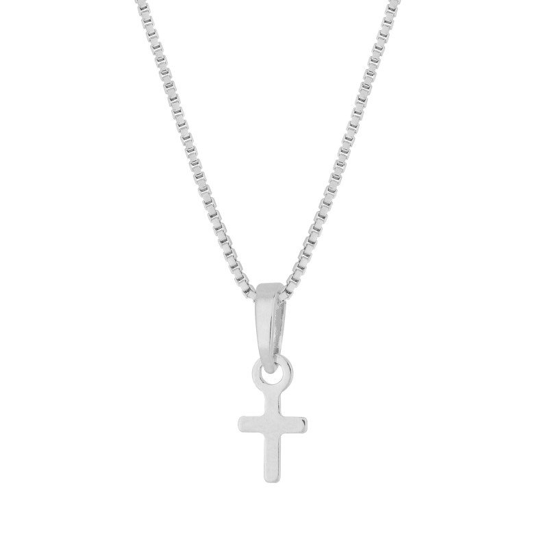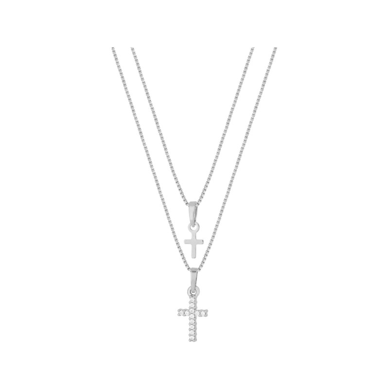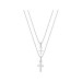 Colar em Prata Revestido Ródio Branco Veneziana Dupla com Cruz e Zircônia Branca 11x6mm 45cm 00297