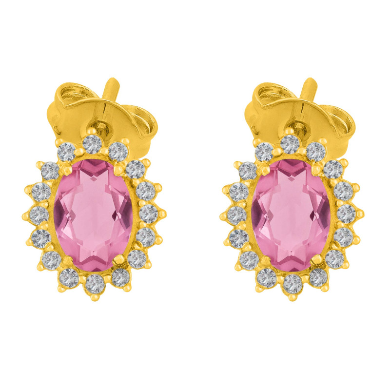 Brinco de Prata Queens Safira Rosa Revestido com Ouro 18K 5x7