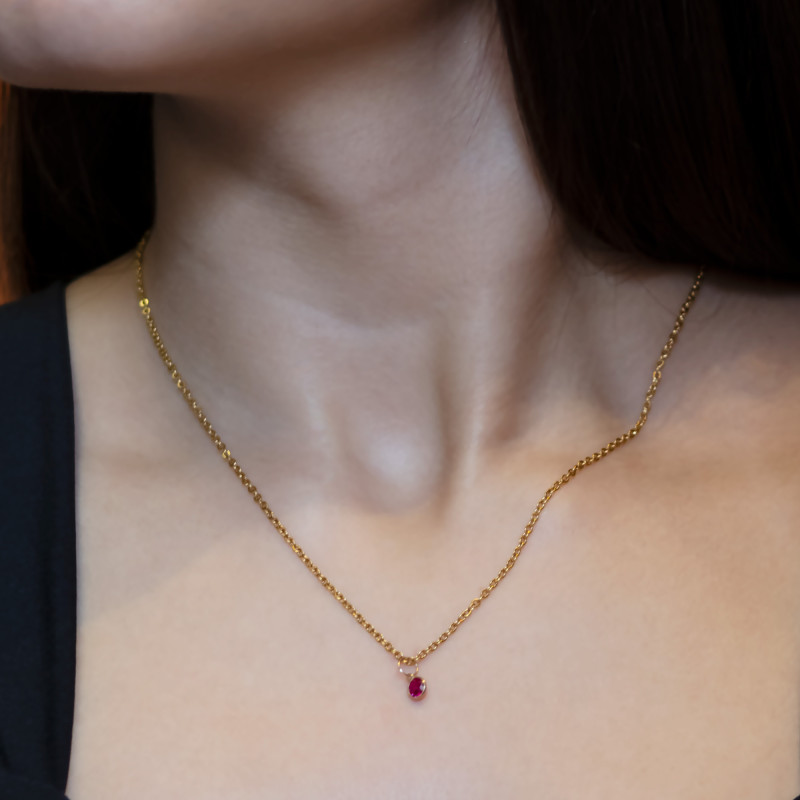 Colar Ponto de Luz Zircônia Rubi Ouro 10 Corrente Aço IPG 45cm 00013