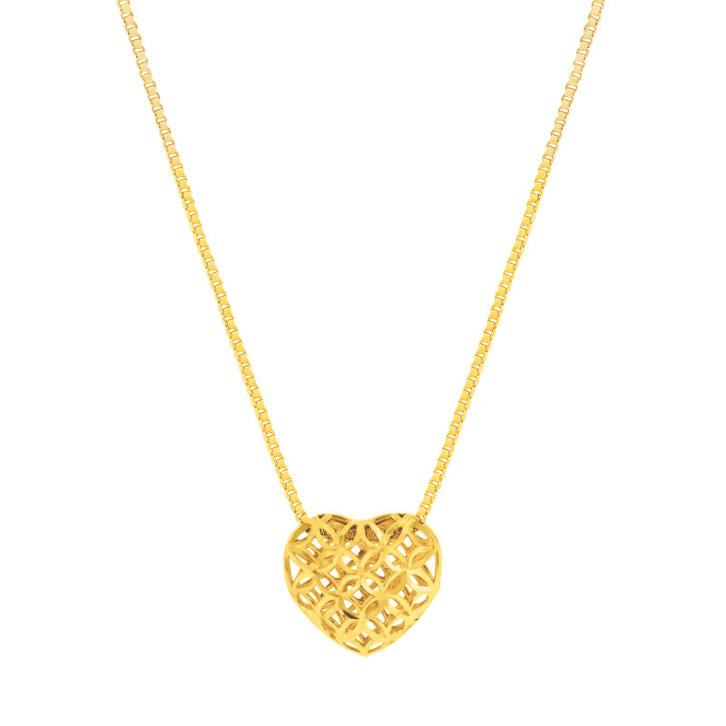 Um lindo colar feito em prata com revestimento em ouro 18k, o pingente delicado com a tecnologia filigrana, deixaa joia mais leve e elegante.