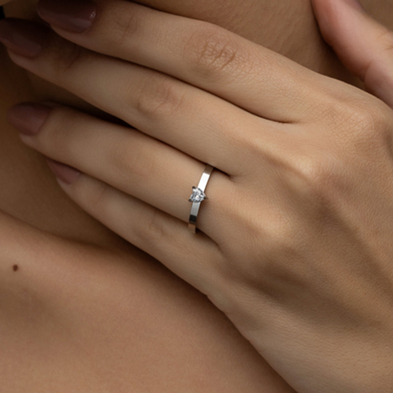 Anel de Aço Solitário Love Zircônia Coração 5mm