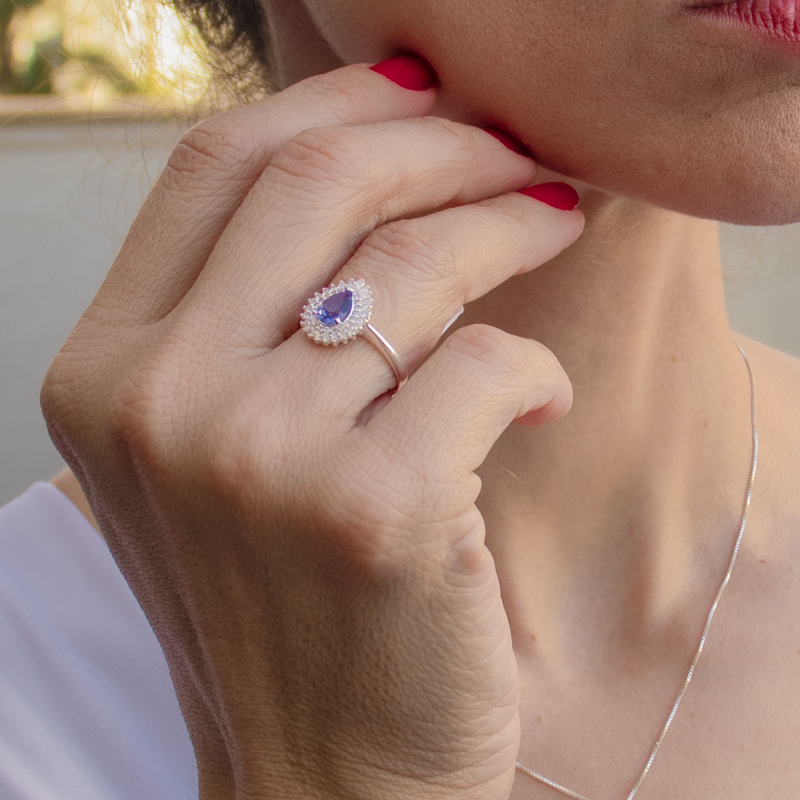 Anel de Prata Coleção  Queens Cristal Tanzanita.