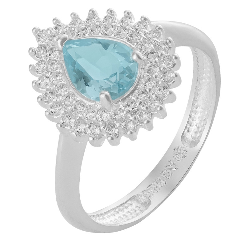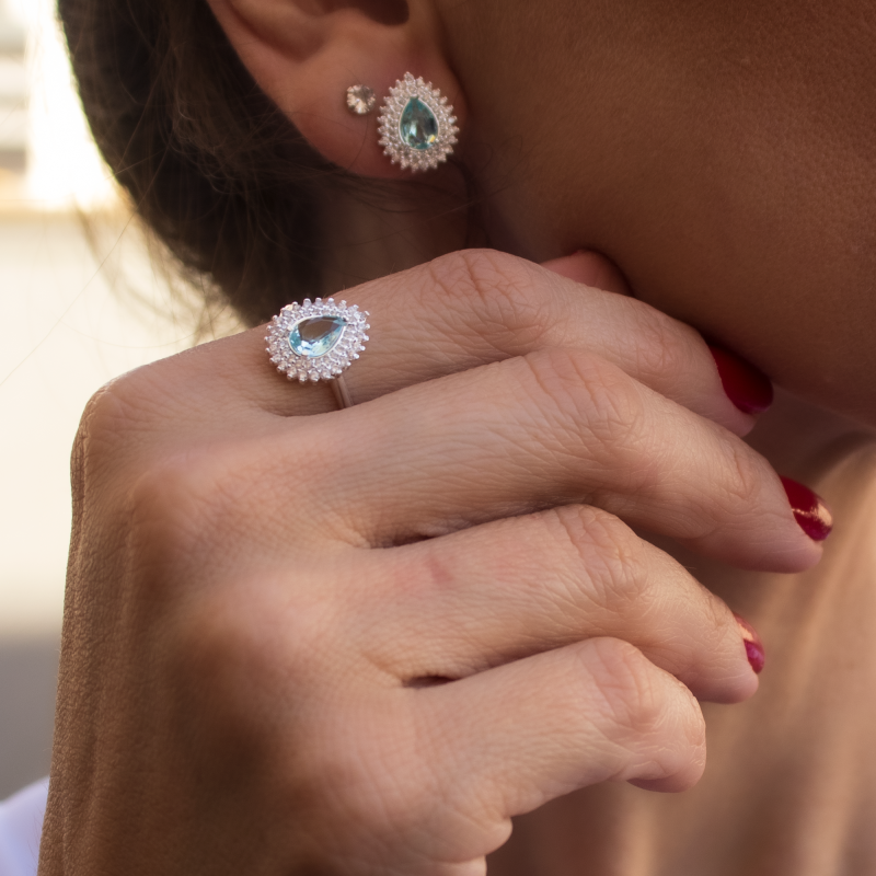 Anel de Prata Coleção Queens Cristal Topázio Sky.