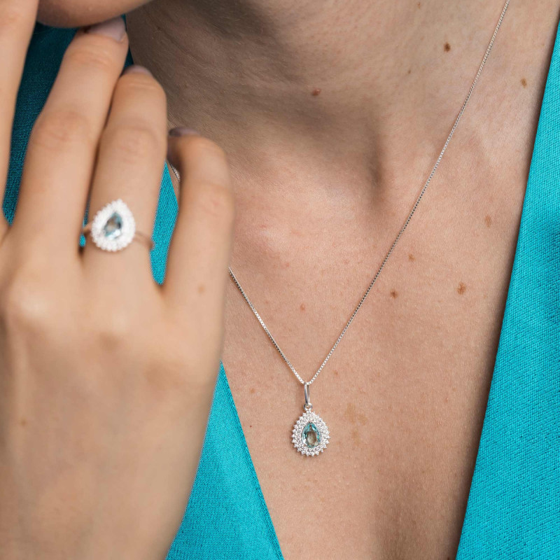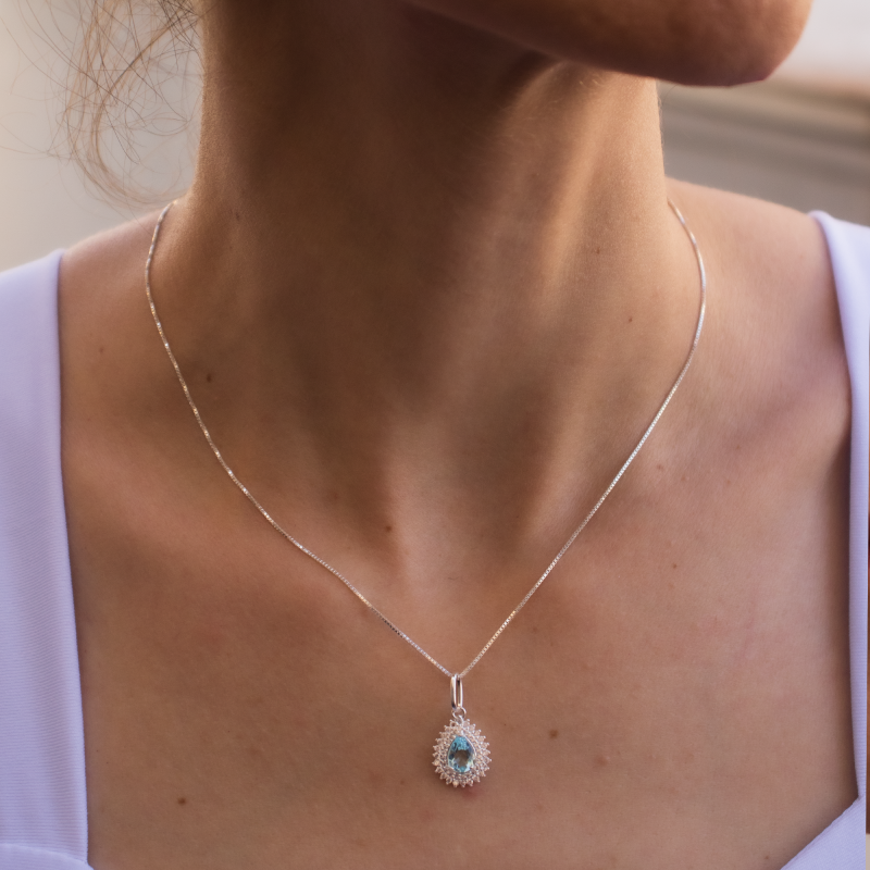 Colar de Prata Coleção Queens Cristal Topázio Sky.