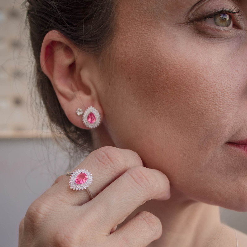 Anel de Prata Coleção Queens Cristal safira Rosa.