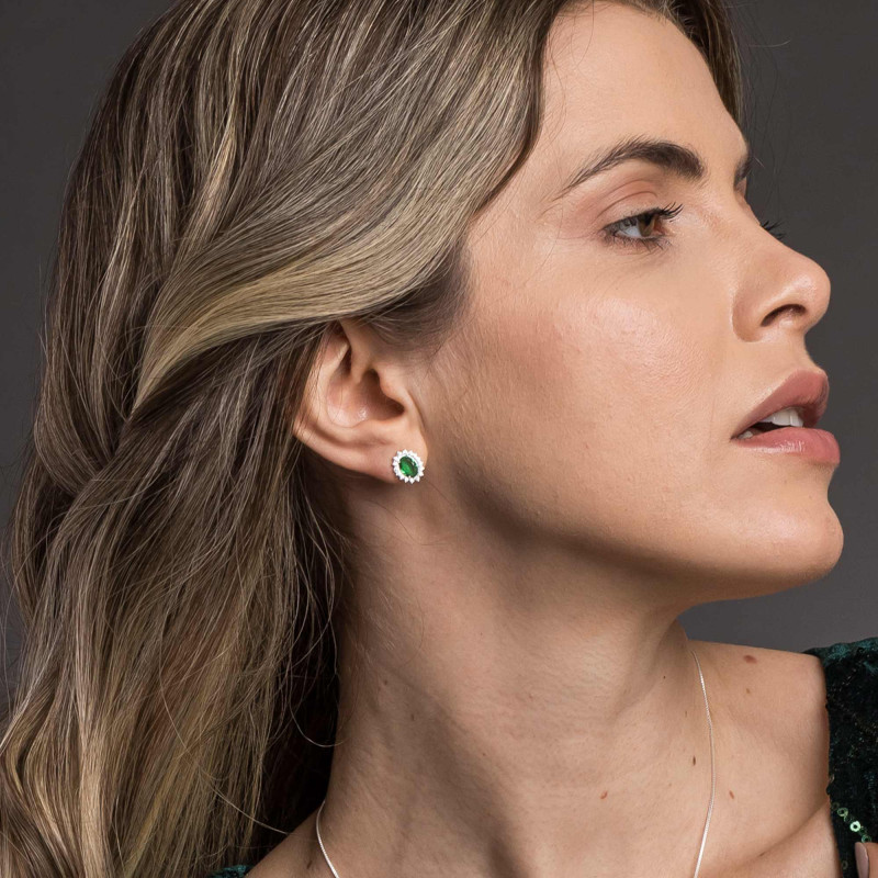 Brinco de Prata Coleção Queens Cristal Esmeralda