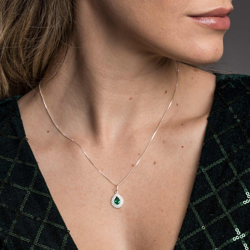 Colar de Prata Coleção Queens Cristal Esmeralda