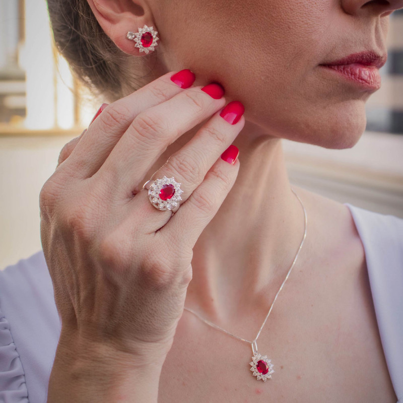 Colar de Prata Coleção  Queens Cristal  Rubi