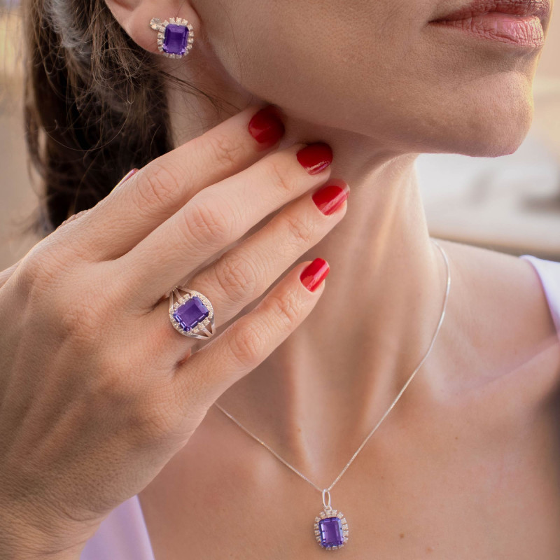 Anel de Prata Coleção Queens Cristal Tanzanita