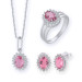 01 - Par de Brincos com 16 Zircônias Brancas 1.25mm e 1 Cristal Oval 5x7 Safira Rosa