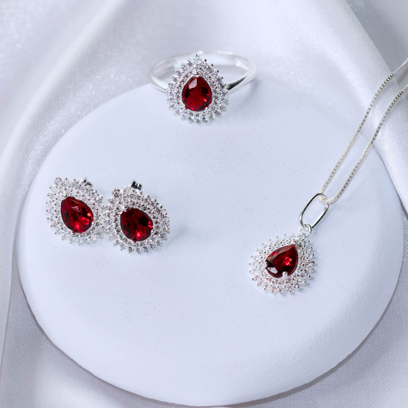 Conjunto de Prata Coleção Queens Cristal Rubi