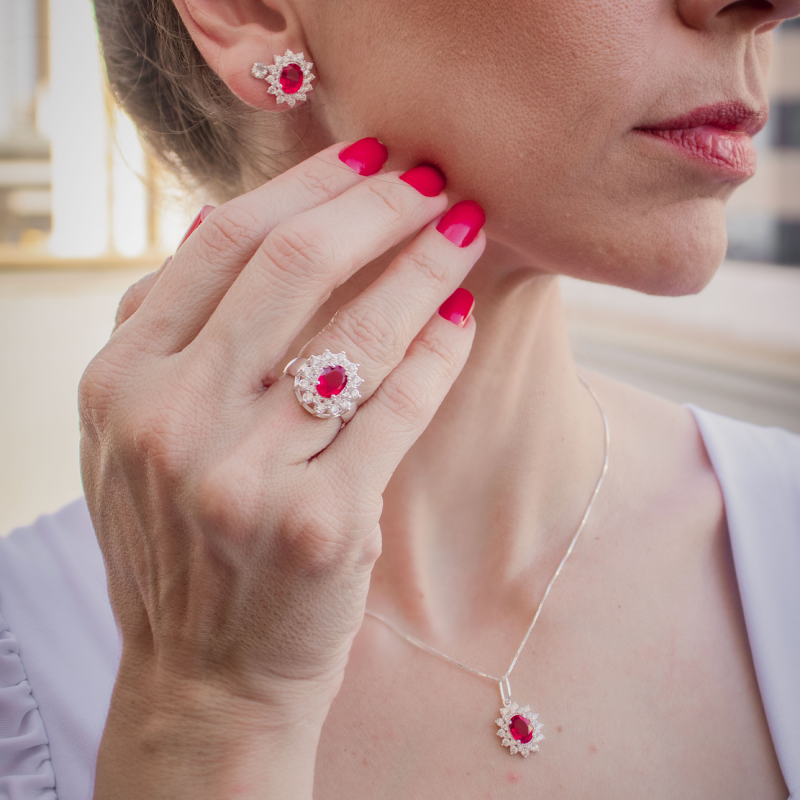 Conjunto de Prata Coleção Queens Rubi