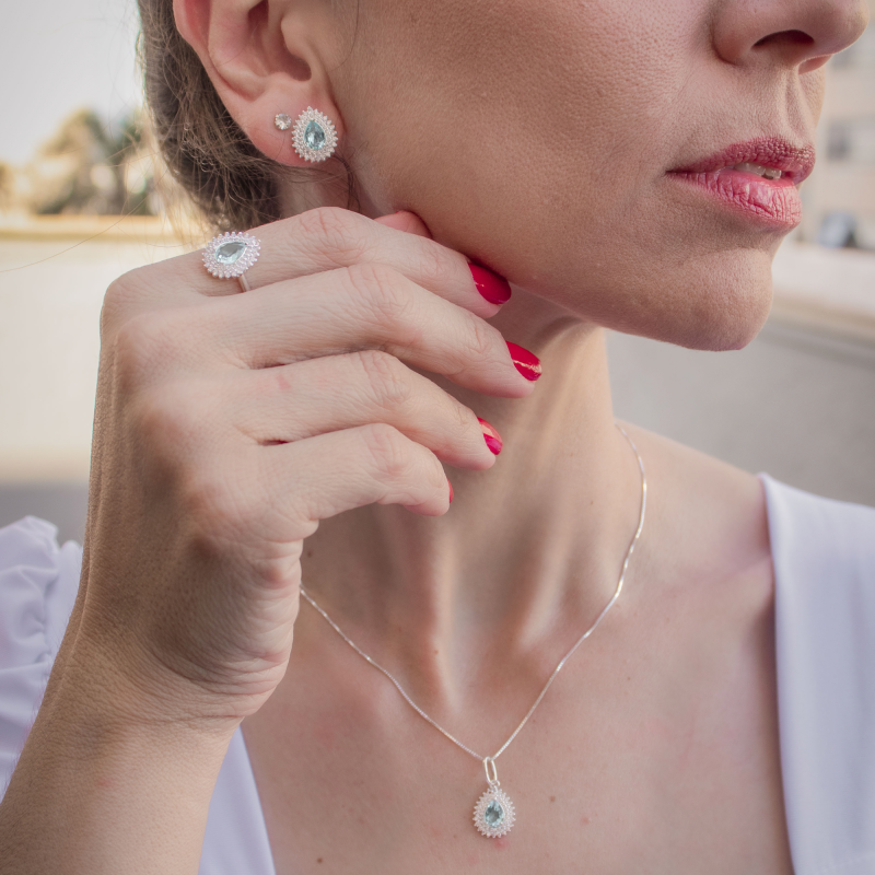 O uso da prata nas joias traz a elegância de um dos metais mais nobres, tornando cada detalhe especial, sendo um material clássico que se mantem em alta na moda e estilo.