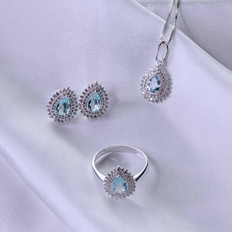 Conjunto de Prata Coleção Queens Cristal Topázio Sky