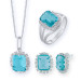 01 - Anel com 16 Zircônias Brancas 1.5mm e 1 Cristal Retangular Topázio Sky 8x10 - escolher o seu aro.