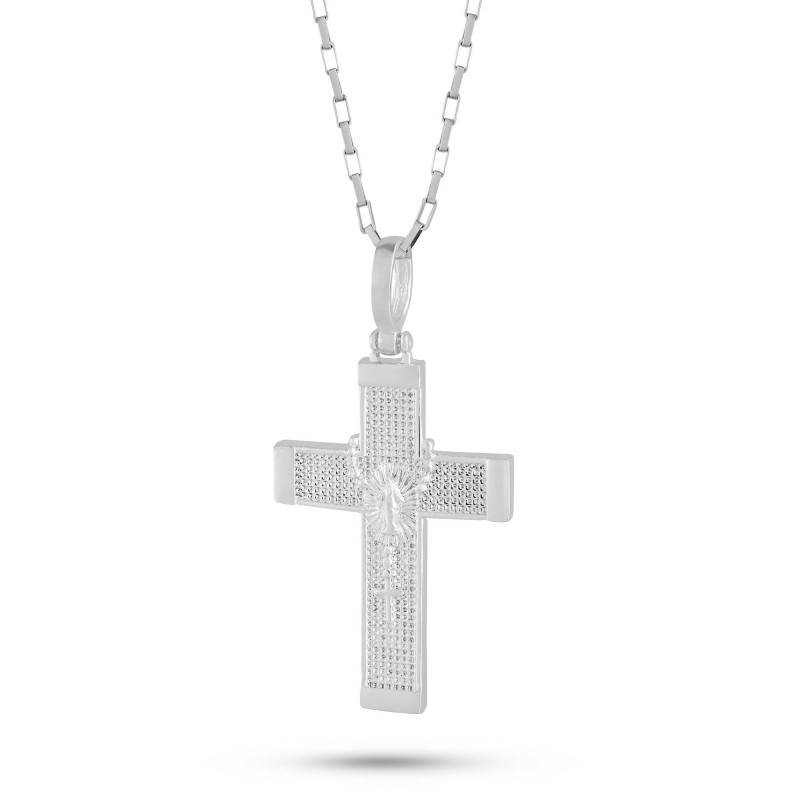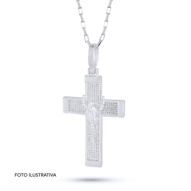 Pingente de Prata Cruz Terço Nossa Senhora das Graças 30x20