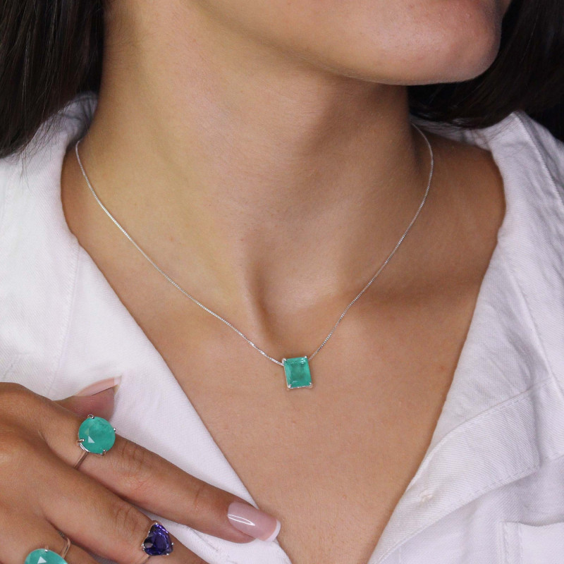 Colar de Prata Coleção Fancy Fusion Verde Retangular 8x10 45cm