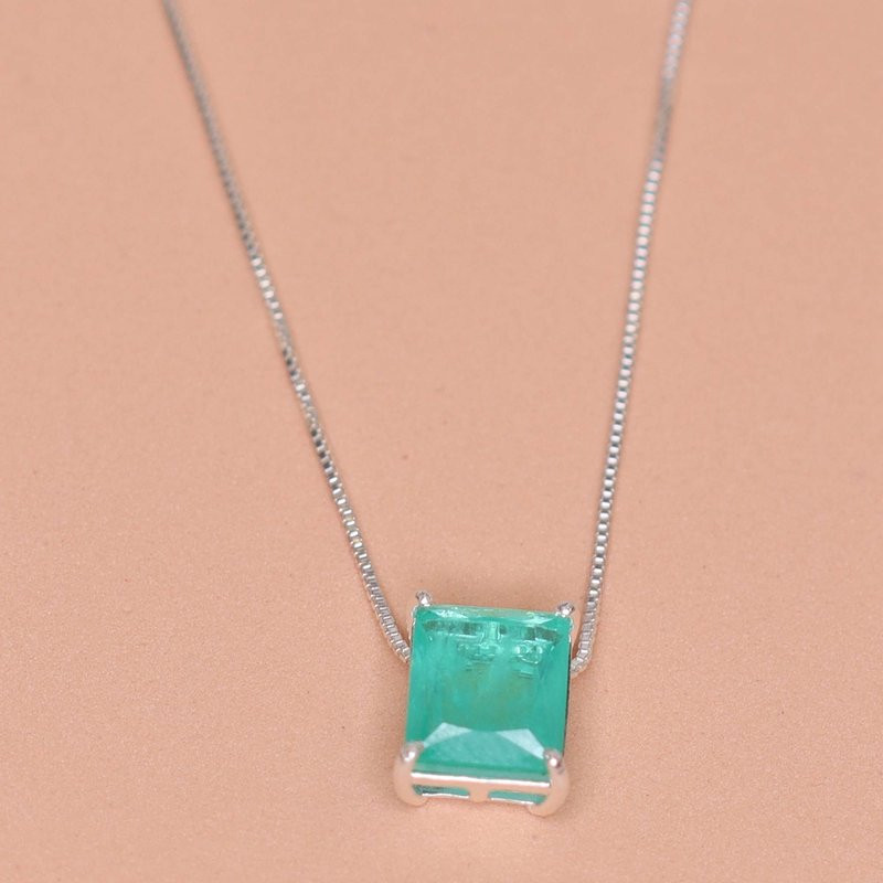 Colar de Prata Coleção Fancy Fusion Verde Retangular  8x10 45cm