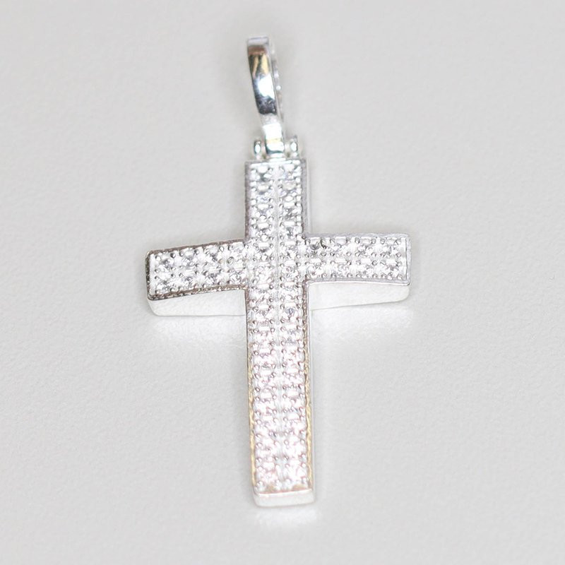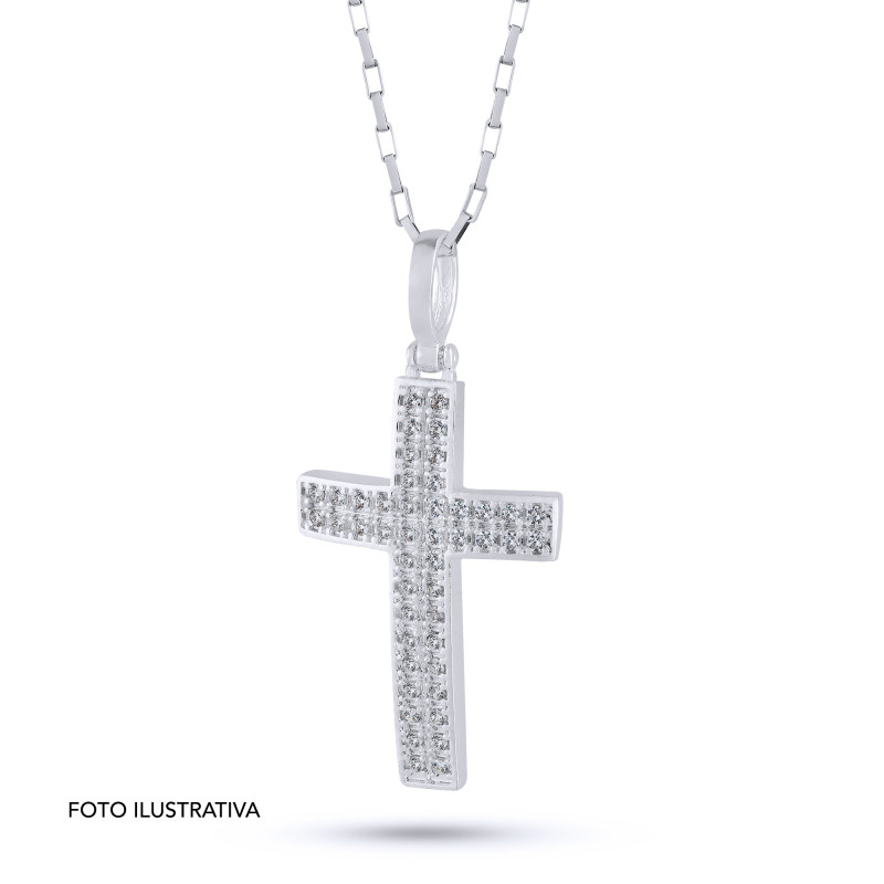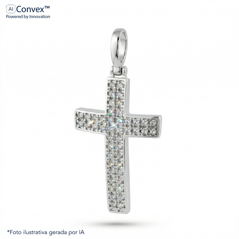 Pingente de Prata Cruz Cravejada com Zircônias 30x20