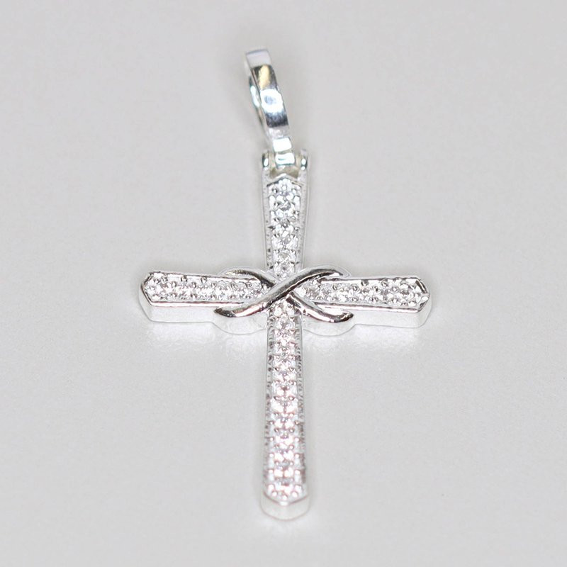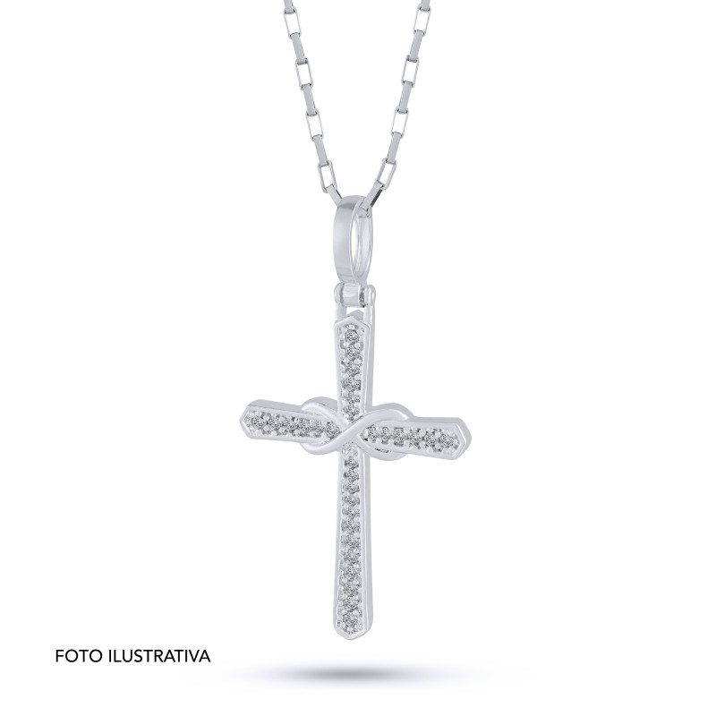 Pingente de Prata Cruz Infinito com Zircônia Branca 30x20