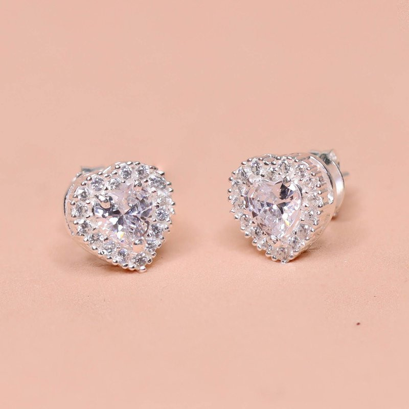 Brinco de Prata Coleção Fancy Coração Cristal 8x8