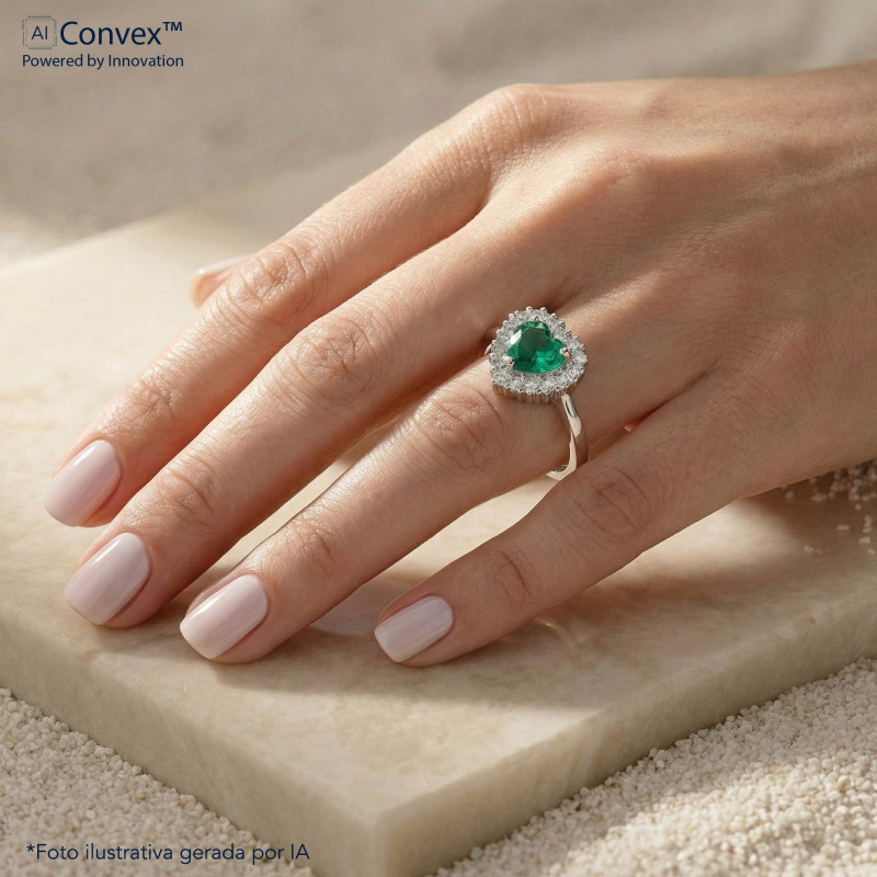 Medida da Pedra Central: Zircônia Esmeralda Coração 8x8mm