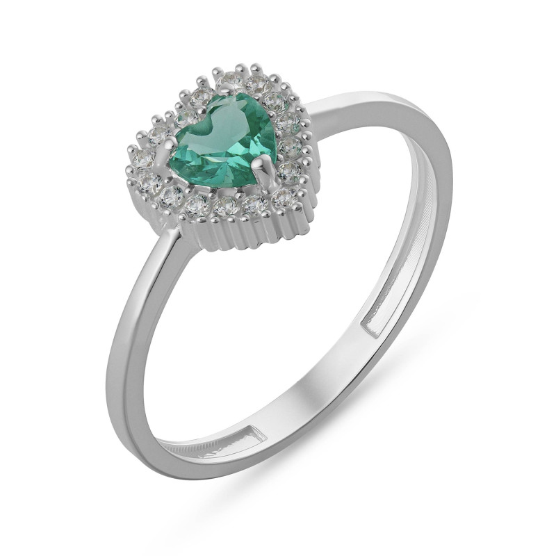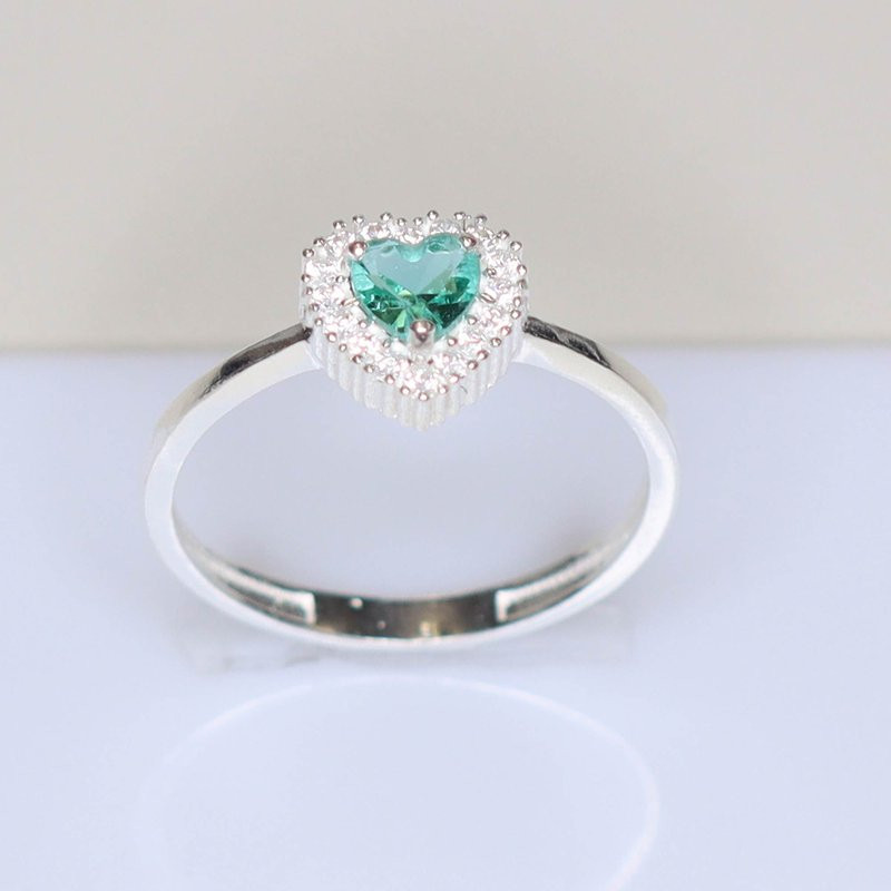 Anel de Prata Coleção Fancy Coração Zircônia Esmeralda 8x8