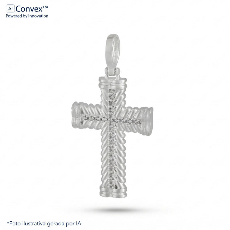 Pingente de Prata Cruz Faith com Zircônia Branca 30x20