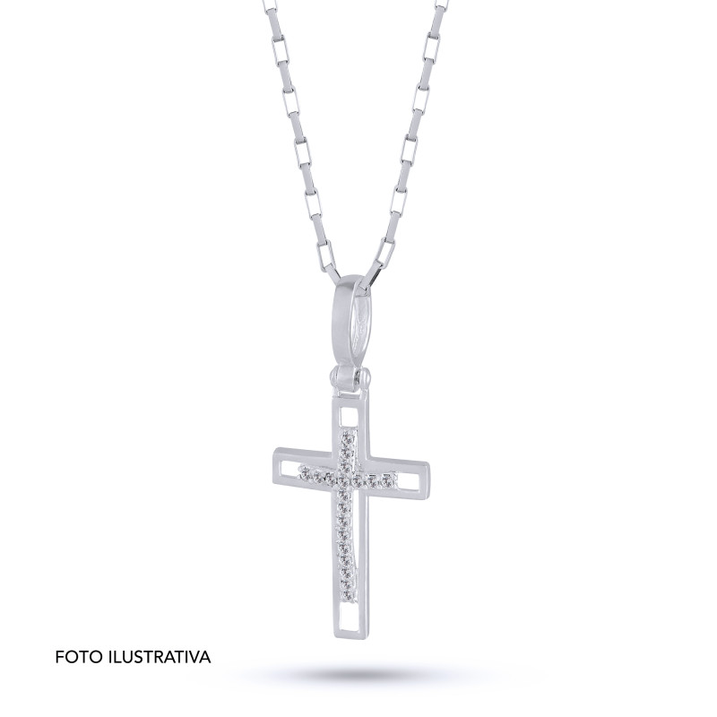 Material: Prata 925 Trabalhada Cruz com Cruz com Zircônias brancas