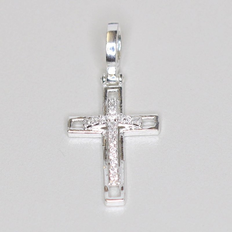 Pingente de Prata Cruz Trabalhada com Cruz Zircônias 13x20