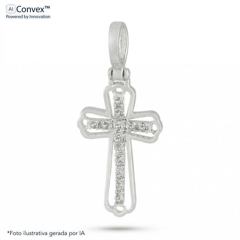 Pingente de Prata Cruz Trabalhada com Zircônias Brancas 13x20