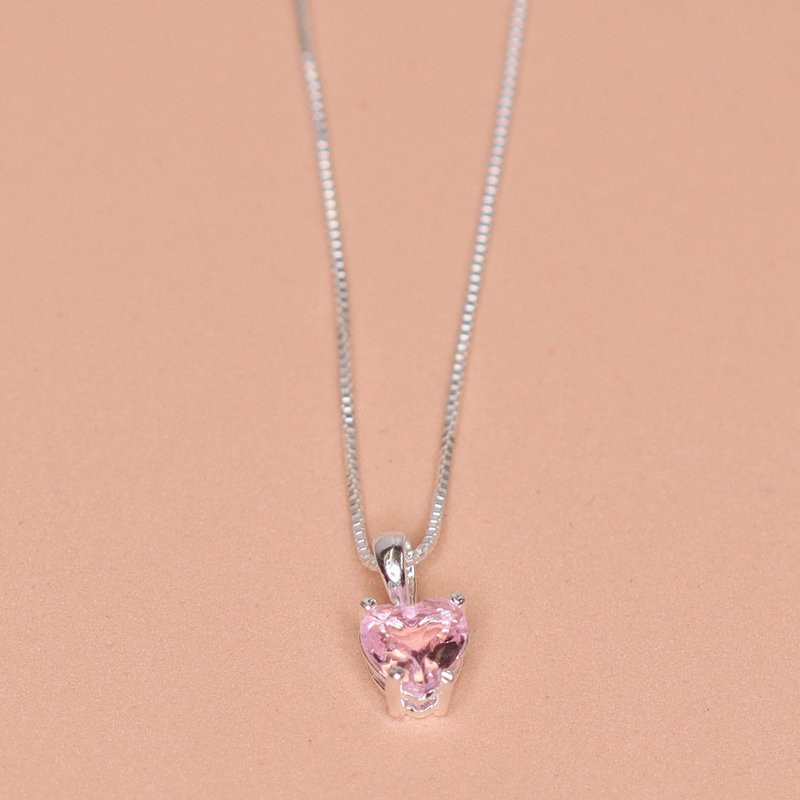 Colar de Prata Ponto de Luz Coleção Fancy Coração Cristal Rosa 6mm 45cm